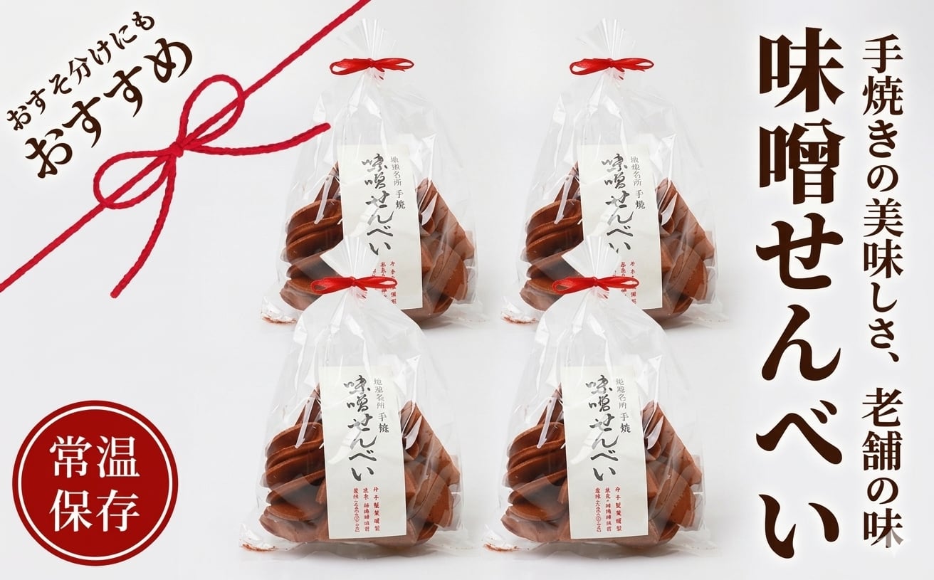 味噌せんべいは、濃厚な味噌の風味と香ばしさが特徴のお煎餅です。口に入れると味噌のコクが広がり、噛むほどに甘じょっぱい味わいが感じられます。どこかほっとする、優しい味わいをぜひお楽しみください。